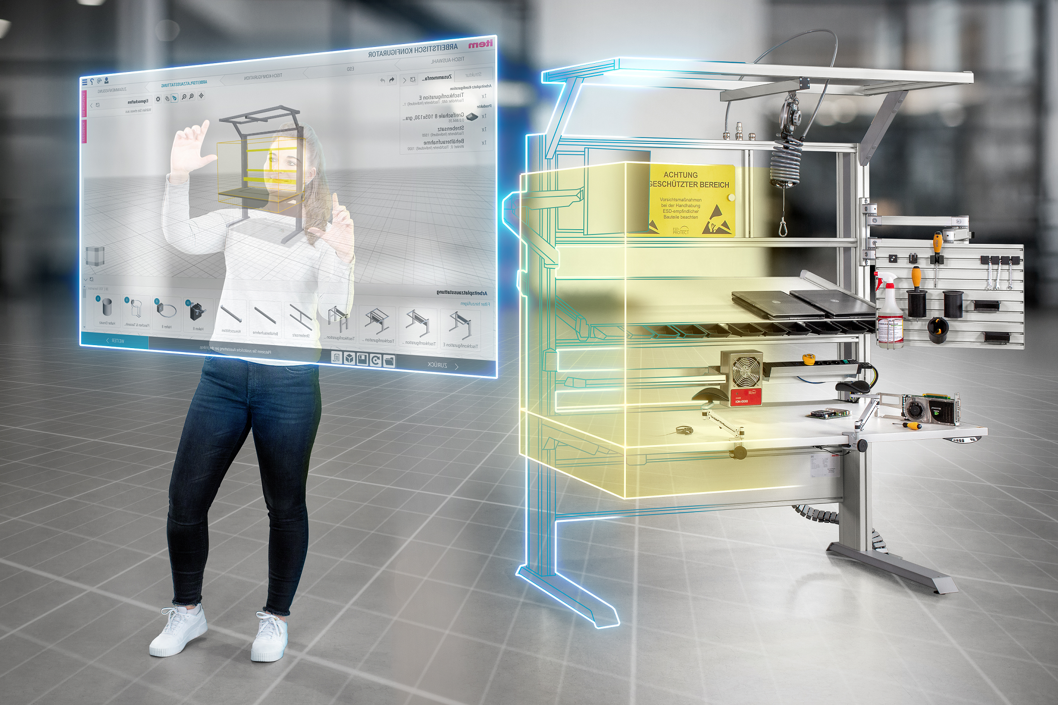 Caption 1: The new item Work Bench Configurator can be used to configure work benches in even more variants with ease. Products from the ergologistic® portfolio can also be integrated.