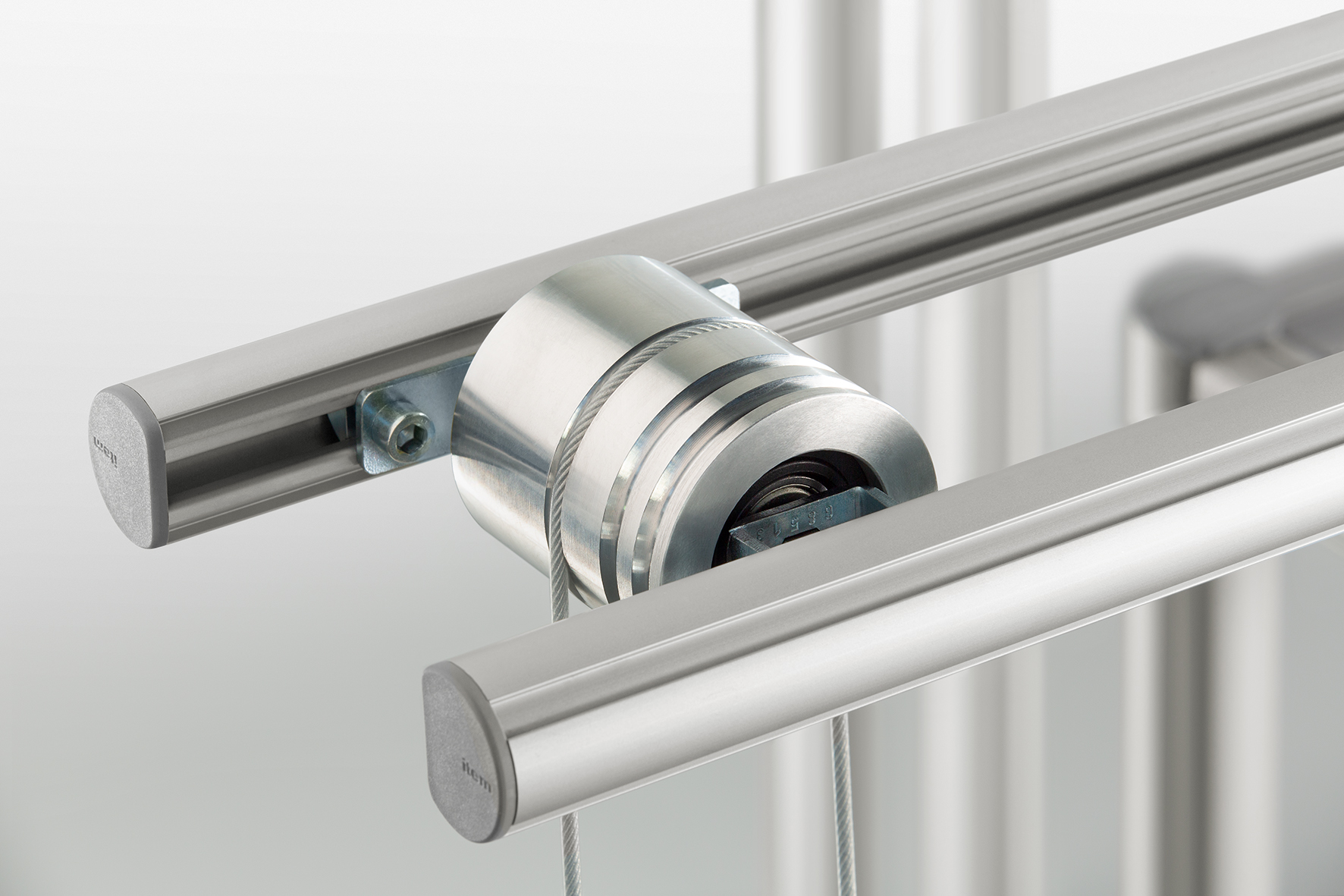 Caption 2: Braking Roller Set D52-95 M6 ensures assemblies move steadily, while preventing excessive strain on frames and moving elements.