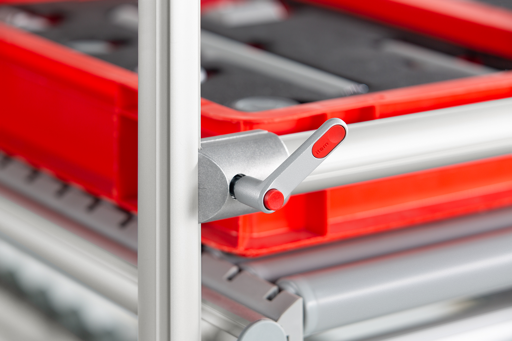 Braking Roller Set D52-95 M6 from item ensures assemblies move steadily. The braking effect is low when the roller is turning slowly and increases as speed accumulates. This reduces the mechanical strain on frames and moving elements. The Braking Roller is suitable for transporting moderately heavy containers and goods weighing up to 15 kg. It can be fitted to any Line 8 system groove with screws and T-Slot Nuts. Other new additions from the current product catalogue include Fasteners with Clamp Lever. These can be used to quickly adapt assemblies to suit new requirements if constructions need to be reconfigured due to changes to processes and production sequences. Profile Tubes can be fixed in place in next to no time, and test structures and assembly aids can be built in a few simple steps. This new component is available in two designs – Fastener D30 with Clamp Lever and Parallel Fastener D30-60 with Clamp Lever. What’s more, Locking Ring D30 with Clamp Lever offers a flexible, adjustable solution for Profile Tubes D30. All Clamp Levers are part of the award-winning operating elements Pi range and boast an ergonomic, easy-to-grip shape, caps in contrasting colours and pushbuttons.